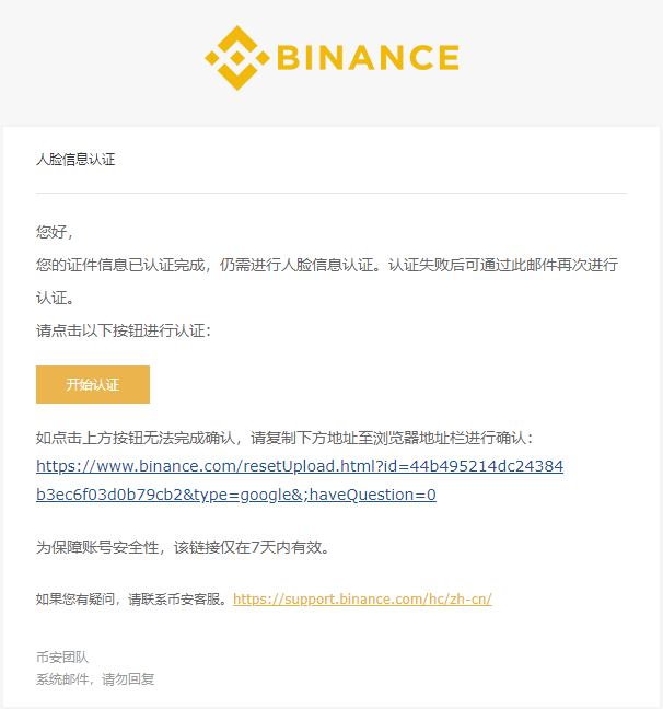 3.系统会向您的币安账户邮箱发送一封验证邮件,点击黄色按钮“解冻账户”。